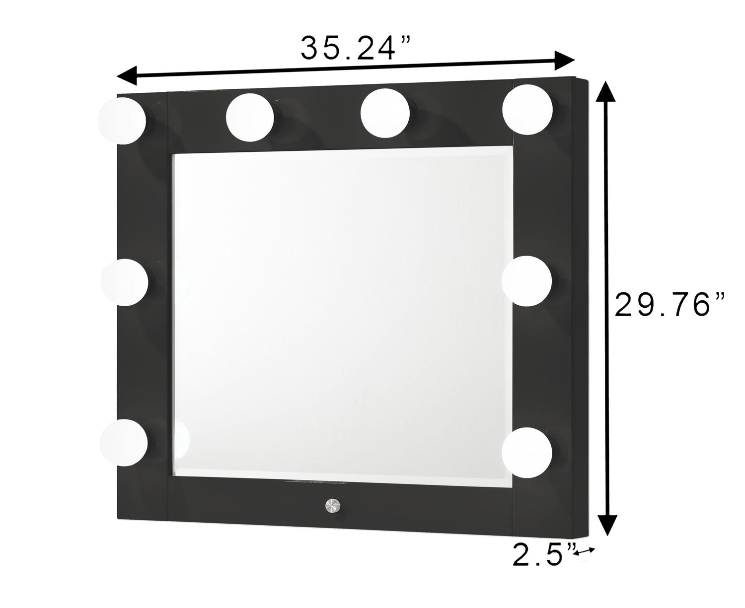 Step into a world of glamour with this sleek and chic vanity set, a perfect fusion of functionality and fashion. Its glossy white finish and clean lines are complemented by the sparkle of crystal-like knobs, adding a touch of sophistication to your personal space. The spacious tabletop, graced with a large mirror surrounded by radiant lights, offers an ideal stage for beauty routines, ensuring flawless makeup application under impeccable lighting. With a variety of drawers, this vanity provides ample storage to keep essentials organized and within reach. Interior drawer lighting, integrated outlet, and hidden drawer storage are just some of the included features.