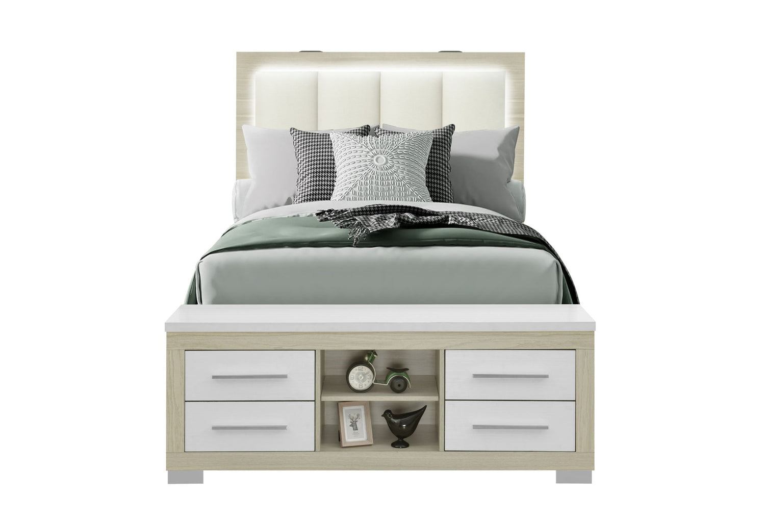 Madison - Full Bed Footboard With 2 Drawers And 1 Shelf - Natural / White
