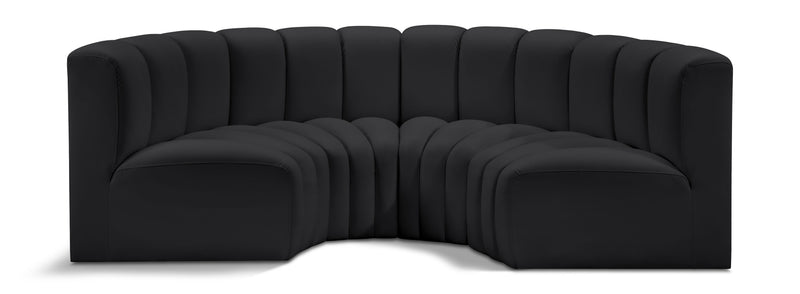Arc - Faux Leather 4 Piece U-Shaped Modular Sofa - Black